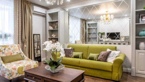 Интерьер трёхкомнатной квартиры с зелёными акцентами
