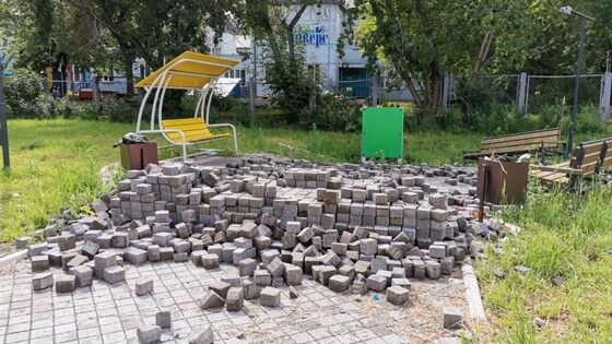 В сквере на Новосибирской начали менять брусчатку