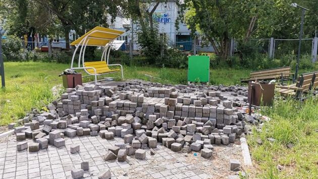 Сквер "Добрый" на ул. Новосибирской начали устранять последствия неправильного обустройства, сообщает мэрия. Сквер появился в 2018 году, но спустя некоторое время в сквере начала разрушаться брусчатка. После обращения в суд, стало ясно, что при обустройстве сквера были допущены нарушения, и это стало причиной некачественной укладки брусчатки. Сейчас, по решению суда, подрядчика устраняет нарушения - обновляет брусчатое покрытие, а позже установит скамьи, урны и детские карусели. Фото: администрация города