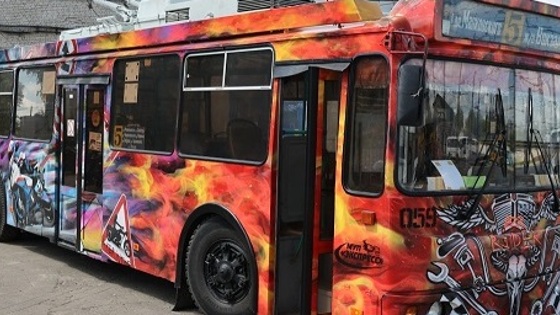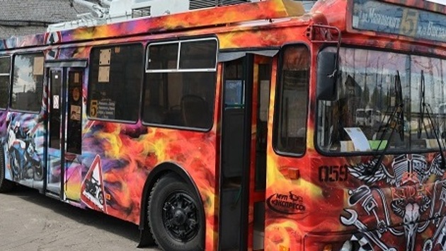 В выходные в Дзержинске состоялось открытие мотосезона. В его рамках было презентовано очередное граффити на троллейбусе с использованием символики байкерского движения. Автором работы стал Илья Спиченков. Он уже украсил в разных стилях четыре троллейбуса, все они работают на маршрутах города. Об этом сообщили в пресс-службе администрации Дзержинска.