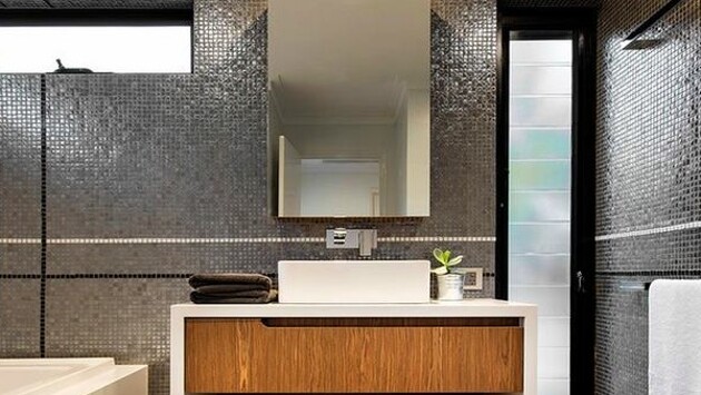— Ещё довольно часто в ванной комнате используют реечные потолки, это самый привычный вариант для большинства людей. Такой потолок был особенно популярен в 2000-е годы, тогда он устанавливался в каждую вторую ванную комнату.