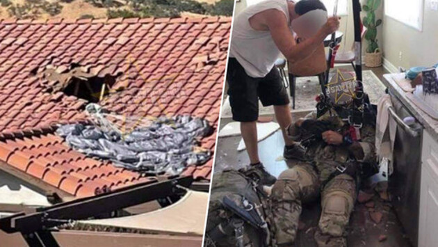Парашют британского военнослужащего в ходе отработки прыжков в Калифорнии, США, не полностью раскрылся, и он приземлился в жилой дом, проломив крышу жилища. Об этом сообщает Daily Mail. Инцидент произошел при десантных учениях. Военный отрабатывал прыжки с большой высоты с длительной задержкой раскрытия парашюта, которые используются для секретных миссий на враждебной территории. Военнослужащий развернул запасной парашют с опозданием и продолжил стремительное падение. Он приземлился примерно в 200 милях к северо-западу от Лос-Анджелеса. Несколько жителей города стали свидетелями произошедшего и вызвали службу спасения. "На мой взгляд, это действительно чудо. Кто приземляется без парашюта и остается жив?" - рассказала одна из свидетелей произошедшего, Роуз Мартин. В результате инцидента военный получил незначительные травмы и был доставлен в больницу для лечения. Ранее в Краснодаре парашютист приземлился на многоэтажный дом. При приземлении он зацепился куполом за блок кондиционера и повис на уровне одного из окон многоэтажки. После этого "спортсмен" постучался в дом. Сообщалось, что житель квартиры не только впустил приземлившегося парашютиста, но и угостил его завтраком.