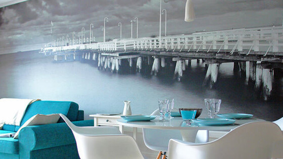 Люцине сразу пришла идея — почему бы не сделать пространство больше при помощи фотопанно? Приём простой, но по каким-то причинам применяемый дизайнерами на практике нечасто. За основу было взято фото того самого известного мола, сделанное одним португальским фотографом.