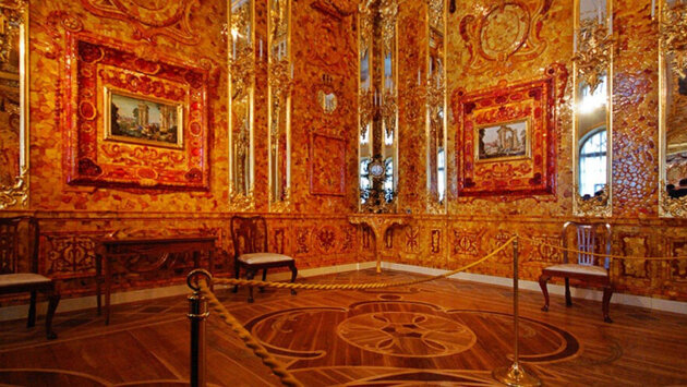 Янтарная комната – шедевр искусства XVIII cтолетия. Она была создана немецкими мастерами во главе с Андреасом Шлютером для прусского короля Фридриха I. Затем это великолепное произведение было подарено русскому царю Петру Великому. Уже в России комната была дополнена зеркальными пилястрами и мозаичными картинами. Творение, названное «восьмым чудом света» считалось жемчужиной летней резиденции российских императоров в Царском Селе…