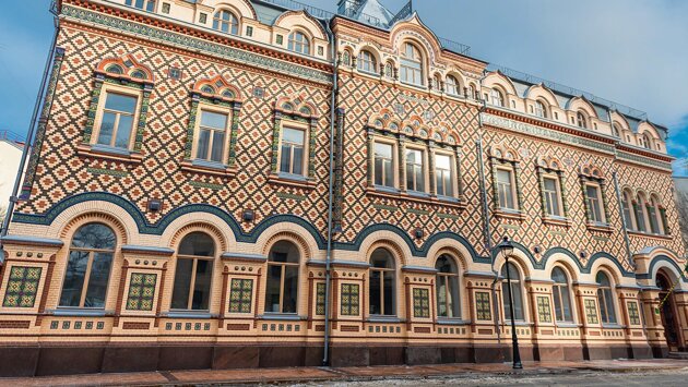 Работы по реставрации декоративных элементов фасада были наиболее трудоемкими. Особое внимание уделили частично разбитым изразцовым вставкам. Тем не менее приблизительно 90 процентов исходных элементов удалось сохранить.