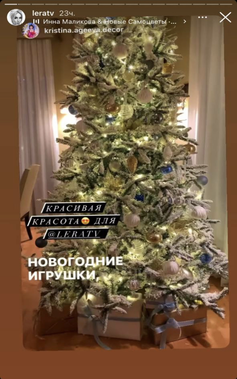 В зале загородного дома Глюк’oZa поставила пышную высокую елку, которую уже успела нарядить. В этот раз для оформления певица выбрала декор в пастельных оттенках: розовом, сиреневом, небесно-голубом и серебряном. Под елку звезда уже положила подарки, завернутые в золотую и красную упаковку. Ани Лорак тоже уже успела показать, как украсили сад и зал ее загородного особняка. Огромную открытую веранду, на которой Ани нередко устраивает фотосессии, дополнили гирляндами с десятками огней. В зале установили елку с красно-золотым декором.