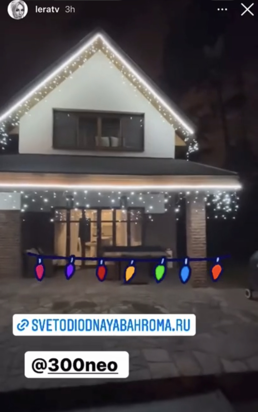 Лера Кудрявцева уже в начале ноября вдохновилась на новогоднюю атмосферу и решила заранее украсить дом светящимися гирляндами. В сториз своего личного блога ведущая поделилась видео, на котором показала загородный дом снаружи, украшенный десятками метров огоньков. Сад по всей территории покрыли теплыми огнями, а крышу дома тоже обыграли гирляндами.