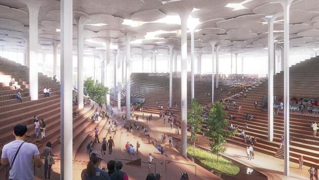 Строительством устойчивой библиотеки занимается норвежское архитектурное бюро Snøhetta. Идея дизайнеров состоит в том, чтобы во время чтения, обучения или работы за компьютером посетители ощущали себя не в помещении, а в лесу под деревом. Ожидается, что новый культурный центр откроется уже к концу этого года.