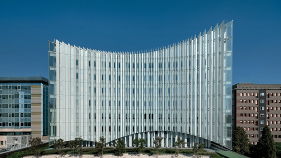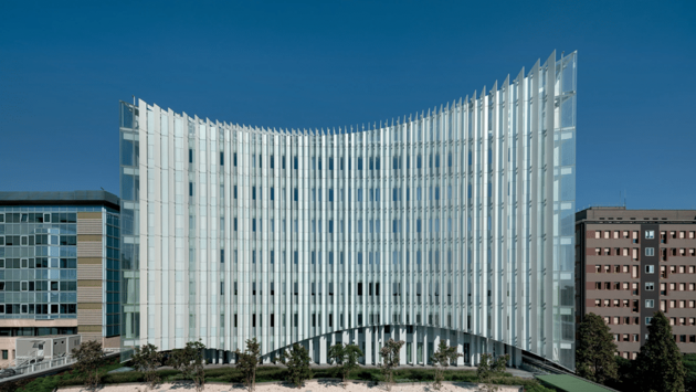 Больница Сан-Раффаэле в Милане, по прозвищу «Айсберг», площадью 40 000 квадратных метров объединяет учебные и исследовательские помещения с отделением неотложной помощи и стационаром на 284 койки, расположенных на 10 этажах нового здания.