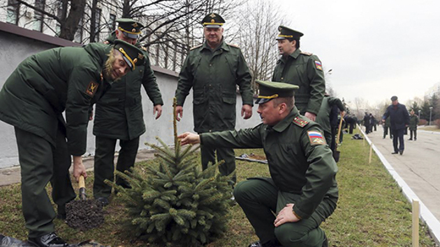 Генералы и офицеры высадили 37 саженцев голубых елей по количеству кафедр, научных центров, институтов, отделов и служб у южной стены здания. 8 декабря, в день создания «альма-матер», выпускники и гости вуза установят в начале аллеи памятный камень.