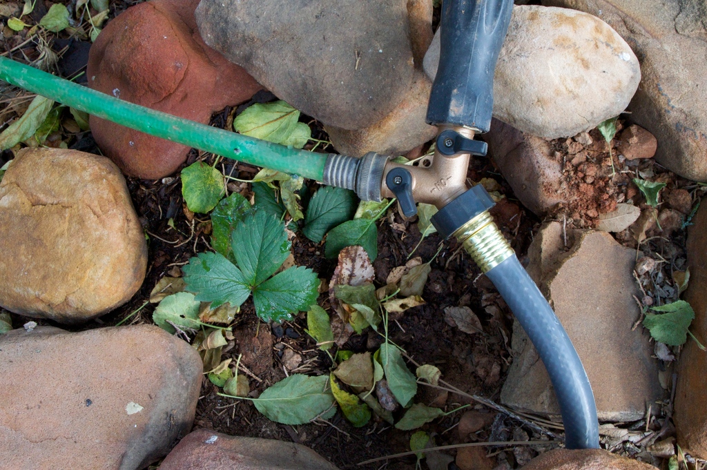 - Полив. Клубнику важно поливать до и после сбора урожая. Во время цветения и плодоношения поливать нужно раз в пять дней, после достаточно одного раза в неделю. Поливать нужно или рано утром, или вечером, под куст, а не сверху.