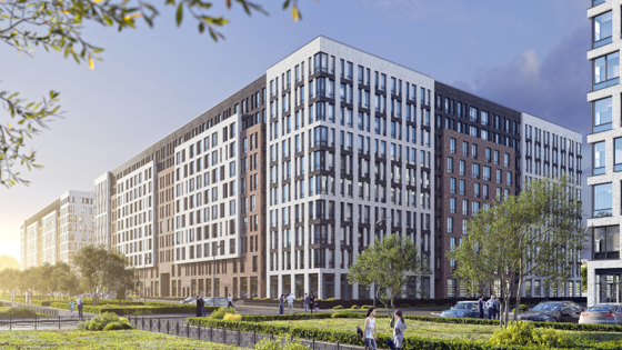 В состав первой очереди комплекса входят два дома на Манчестерской улице. На первых этажах домов с внешней стороны расположены коммерческие помещения, в которых будут открыты магазины, кафе и небольшие пекарни.