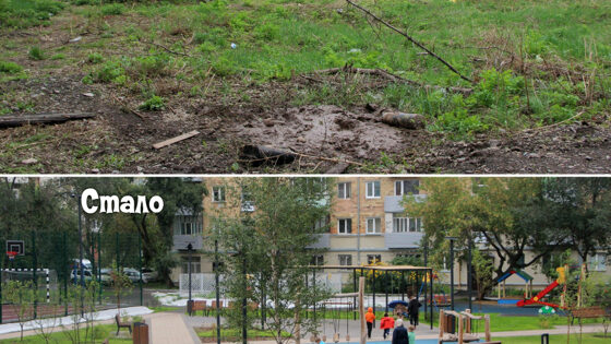Теперь в обновлённом общественном пространстве обустроена центральная аллея из брусчатки, отремонтированы тротуары вдоль многоквартирных домов и сделаны дорожки из асфальтобетона. Кроме того, с помощью дренажной отсыпки из щебня обеспечен водоотвод.