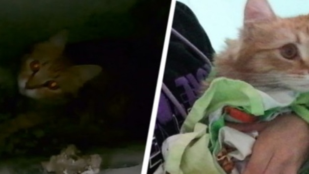 Прибывшие спасатели сразу поняли, что случилось с кошкой, и попросили предоставить им возможность попасть на чердак. Подобравшись к вентиляционным каналам, они увидели в темноте узкой шахте горящие глаза того, кто издавал мяуканье.