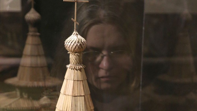 Как архитектор Управления Александр Ополовников исследовал памятники деревянного зодчества по всей Карелии и на выставке идешь вместе с ним от храма к храму, от чертежа к макету....