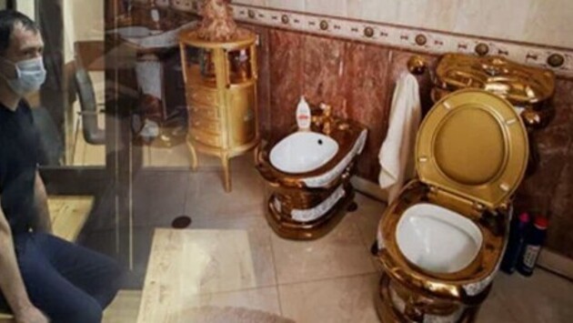 В особняке Сафонова провели обыск и обнаружили, что дом выполнен в стиле рококо, в нём есть ванная и золотой унитаз, которые запечатлели на снимках.