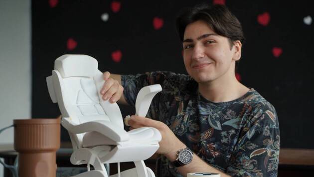 — Далее мы делаем эскиз и макет, — говорит студент первого курса Евгений Мартыненко. — Потом мы дорабатываем его в 3D-программе и делаем финальный прототип.