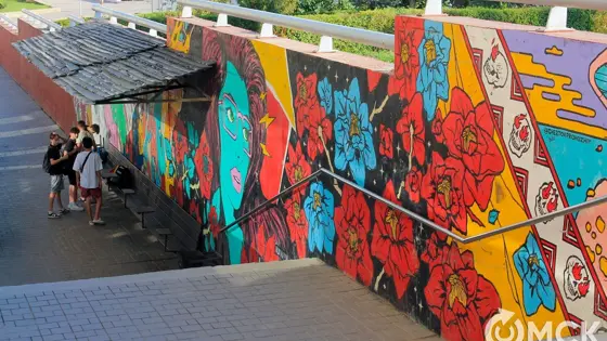 Продолжаем открывать Омск со стороны ярких закоулков и знакомиться с творчеством уличных художников. Сегодня мы вновь заводим разговор о граффити и отправляемся по летнему Омску на поиски примечательных настенных рисунков. В проекте "Уличное искусство" мы знакомим читателей с философией и творчеством райтеров - художников, которые работают в стиле стрит-арт. О каждом рисунке, что приковывает внимание горожан, рассказывают жители Омска, сами создавшие их или случайные "эксперты", полюбившие чью-ту работу всем сердечком. Новой локацией в нашем путешествии по лакомым местам омских граффитистов стала стена возле торгового центра по адресу ул. Гагарина, 14. А представят протянувшееся на несколько десятков метров изображение его автор - иллюстратор и режиссёр Анатолий Жалейко (Чёртов Прохожий), а также Андрей Духовской, арт-директор Oldman Pub, который находится по соседству с красочной стеной. Основная часть композиции была создана летом 2017 года, её общая идея получила выражение во фразе Flower Town - "Город цветов". На эту часть граффити у Анатолия ушёл месяц свободного от работы времени и десятки литров краски. Красочная стена сразу же стала местом притяжение омской молодёжи и локацией для сочных фотосессий. Как родилась идея украсить стену Андрей: Изначально стена была просто бетонная, без всяких рисунков. Сделать её более приятной для глаз - инициатива как паба, так и человека, который рисовал всё это. Наш паб давно сотрудничает с интересным дизайнером и художником Анатолием Жалейко. Большинство идей принадлежит именно ему, кстати, внутри паба тоже много его рисунков. Анатолий: Хотелось сделать серую стену более уютной. Ковёр не повесишь. Единственный выход - создать какой-то рисунок. Очень своеобразное место для заведений как таковое - второго такого в городе нет. Поэтому другой вариант сложно было представить: либо серая стена высотой пять метров, либо - беру в руки краски) Андрей: Соседство с таким объектом вызывает приятные эмоции. Для паба это не только красивая стена, но ещё и возможность украсить территорию, которая находится вокруг. Ведь, помимо граффити, здесь появились зеленые насаждения, цветы, лавочки, крыша - двумя словами, место для отдыха на свежем воздухе для гостей и прохожих. Нам приятно было всё это создавать. В граффити можно выделить несколько центральных образов: большой белый кот, перст, указующий на него, денди, врывающиеся в другое измерение, и мятная "колдунья". Их "обнимают" и пронизывают крупные цветочные вставки. Позже изображение дополнила фигура маленького Йоды - малыш появился в декабре 2019-го, вскоре после выхода на экраны первого сезона сериала "Мандалорец". А в 2021 году бетон вдоль лестницы "оброс грибным принтом". Автор граффити говорит, что вдохновлялся творениями "сказочника" Ивана Билибина (русский художник, книжный иллюстратор и театральный оформитель, - прим. ред.) , поклонником которого является. Но, конечно же, на стене он проявил своё воображение и видение. - В плане концепции рисунка мы не мешали художнику воплощать его идеи. Как Анатолий захотел, так и получилось. Конечно, процесс контролировался, но без фанатизма. Не мешай художнику творить! Цвета Анатолий подбирал сам, и хотел бы заметить, что они очень приятны для глаз, все смотрится единой картиной, идея заключалась также и в этом - переход от одного р