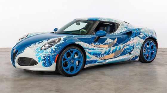 Компания Garage Italia Customs, которая принадлежит эпатажному Лапо Элканну — младшему внуку в прошлом главного акционера «Фиата» Джанни Аньелли — и специализируется на создании уникальных автомобилей, представила одну из самых необычных своих работ. Специалисты компании взяли снятый уже с производства итальянский спорткар Alfa Romeo 4C и превратили его в холст для культовой гравюры «Большая волна в Канагаве» японского художника Кацусики Хокусая.