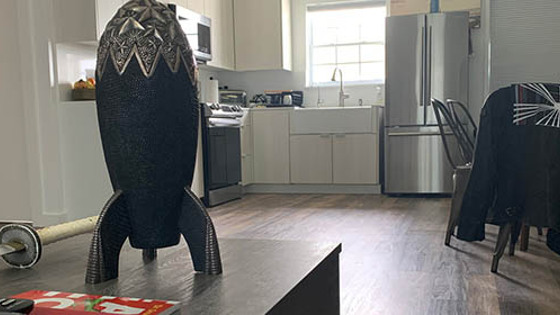 На фото видно, что Маск в крошечном доме хранит катану.