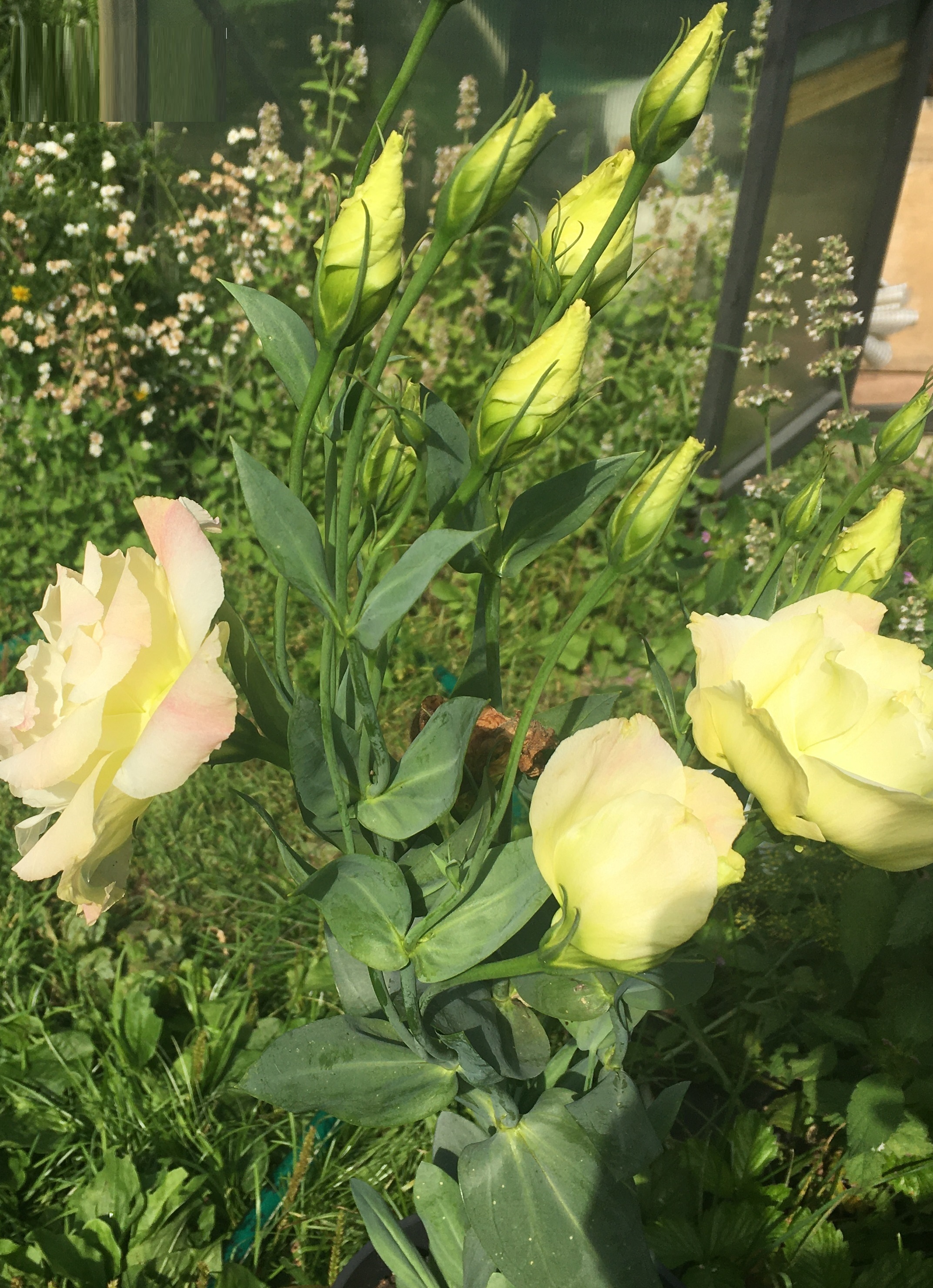 Эустома 'Мадам Баттерфляй': активное цветение в середине августа. Отличная «букетность», но только один побег.