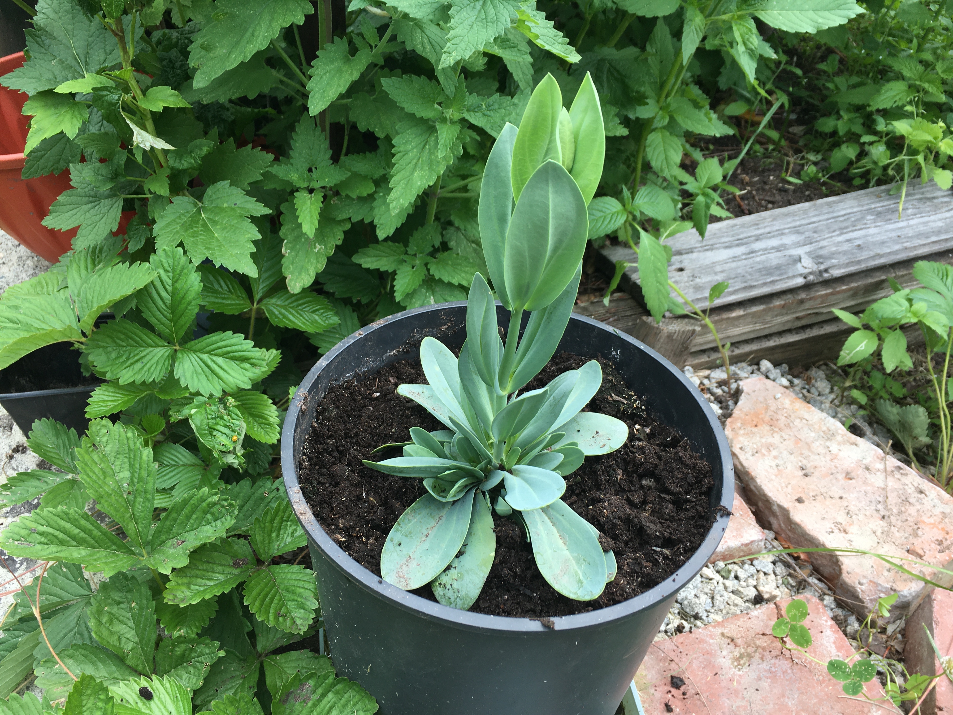 Упущенная возможность: при перевалке рассады в середине мая в горшки объёмом литр-полтора для доращивания в теплице и высадке в вазон в середине июня в близком ко второму фото виде. Можно было выиграть драгоценный для короткого уральского лета месяц и к концу сезона увидеть цветение даже в условиях ограниченной освещенности.