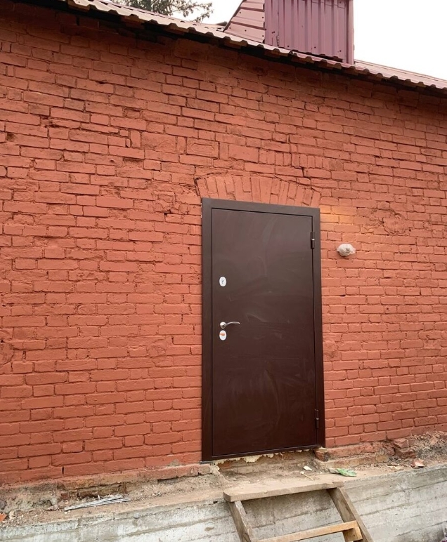 Красить нам понравилось, поэтому мы покрасили дом и снаружи тоже. А еще — вставили современную металлическую дверь. Посмотрите фото до и после — это задняя сторона дома, к ней позже мы пристроили открытую (пока) террасу.