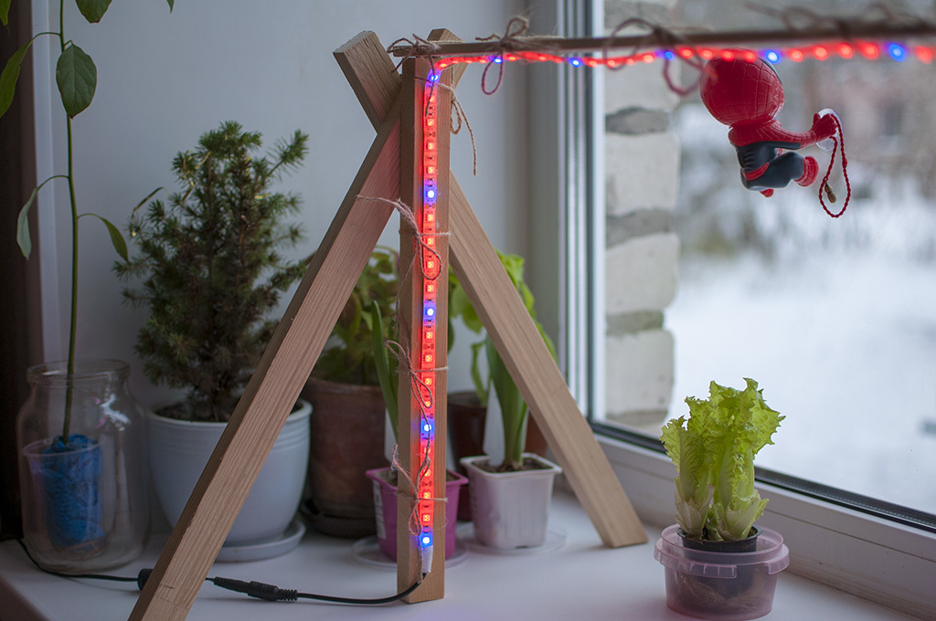 Светодиодную фитоленту купила год назад. Она была на липучке и легко приклеилась по контуру подоконника. Эффект был!