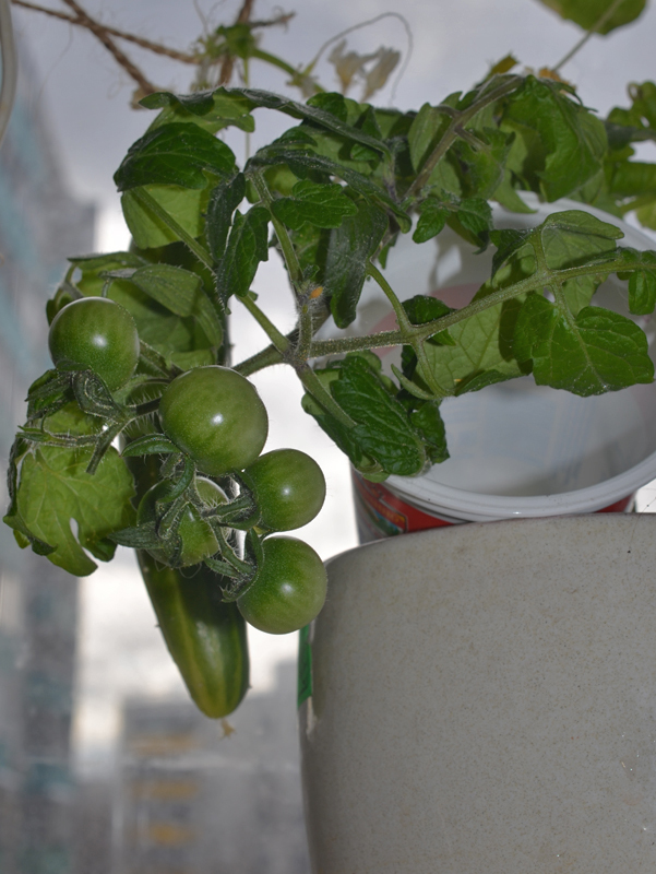 Мне было не до них, я их даже сперва не поливала, но парочка выжила, и сегодня на одном из двух кустиков один помидорчик пожелтел.