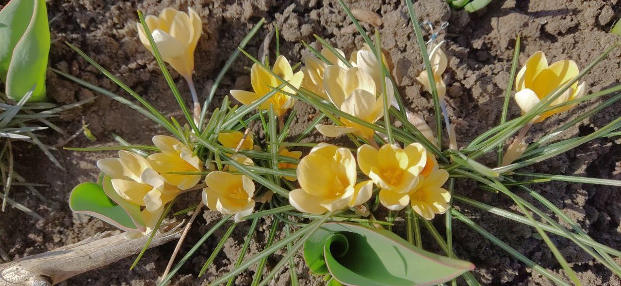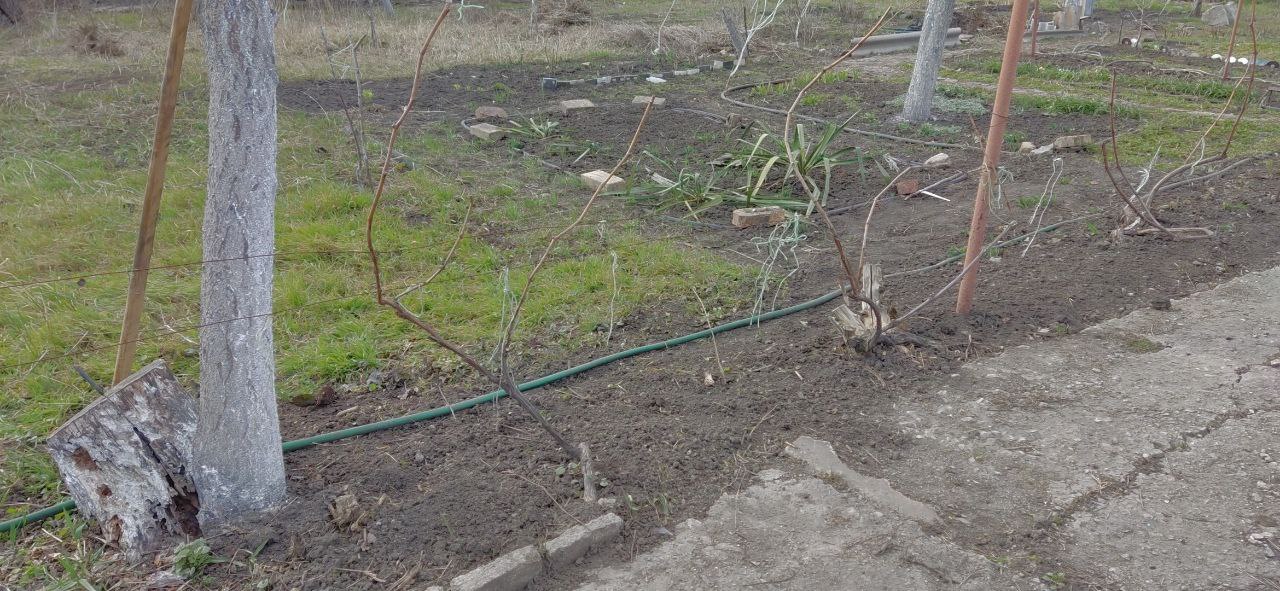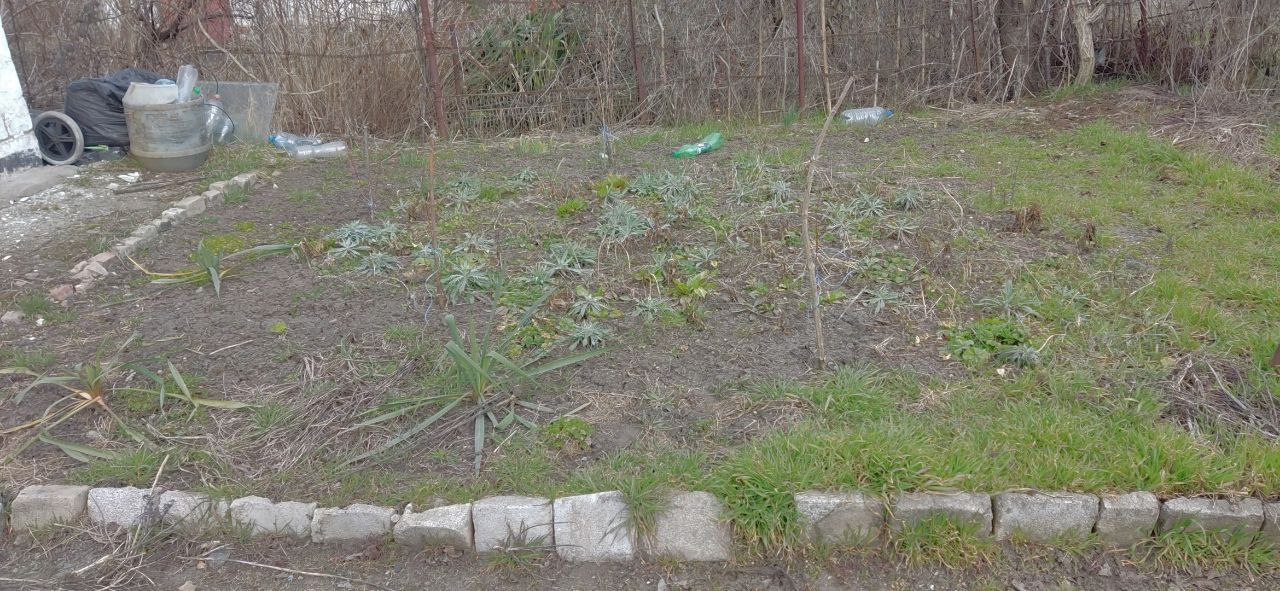 Юкки все живы, даже самый разнесчастный кустик, умирающий с самого переселения, всё ж не сухой. Магония вовсю топорщит листочки. Ясколки разрослись целыми ковриками. На сирени пробиваются почки, и взошёл чеснок из прошлогодних самовыросших семян. Причём щёткой!