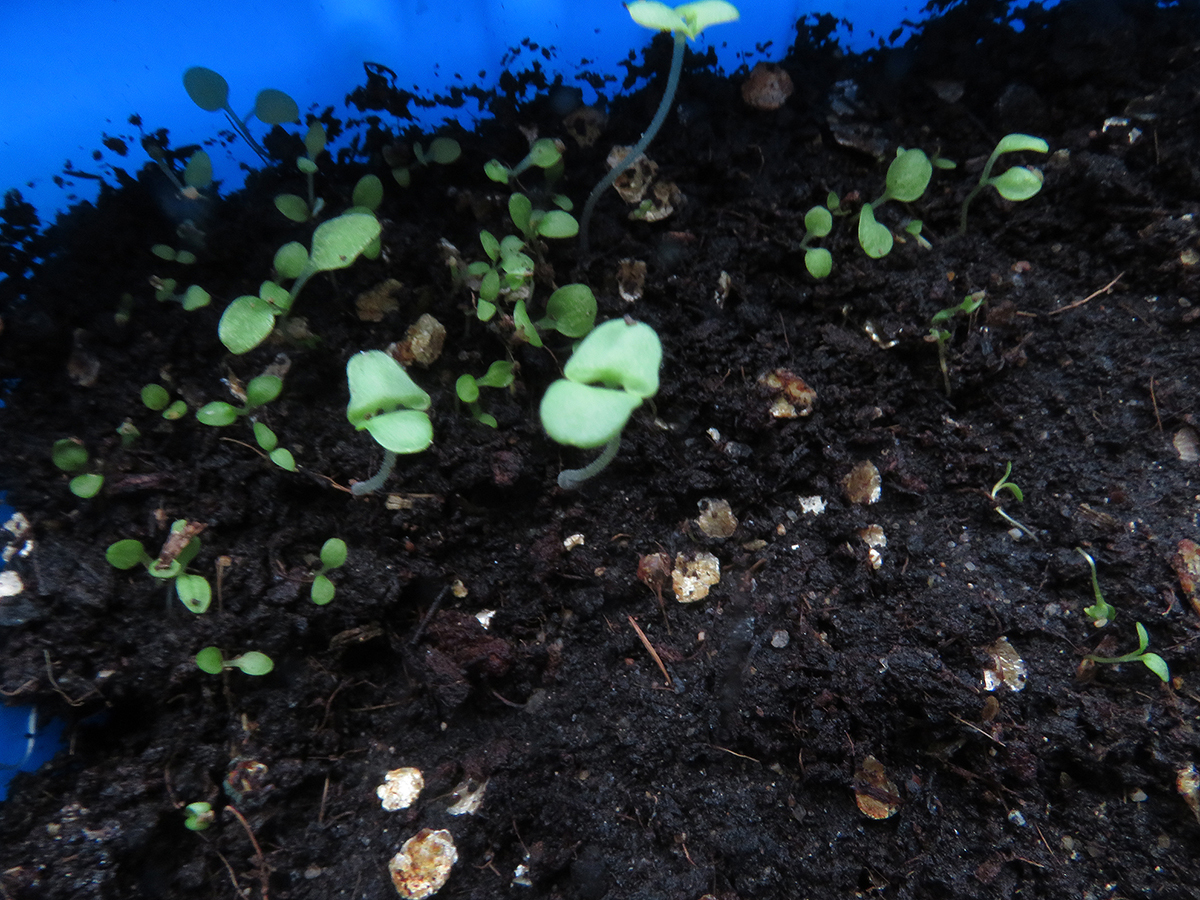 Все посеяла в разные плошки, пометила только колосистую — на нее особая надежда. Появились всходы. Сегодня одну из плошек начала пикировать. А в ней, помимо мелких всходов ориентировочно вероники — несколько всходов лаванды...