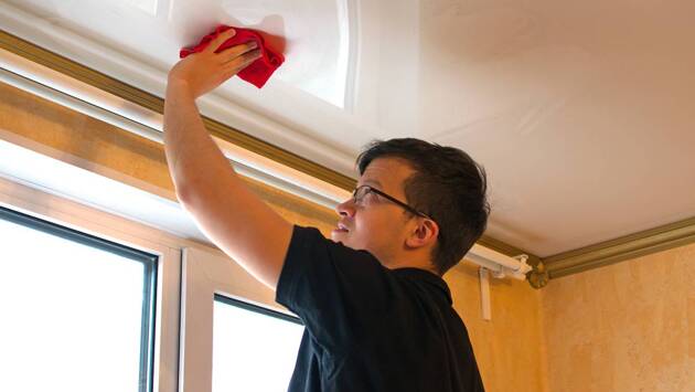 Отмыть натяжной потолок без использования дорогостоящей бытовой химии удастся с помощью нашатырного спирта. Простой способ избавиться от пыли и грязи на нем назвали эксперты издания «Тут Новости».