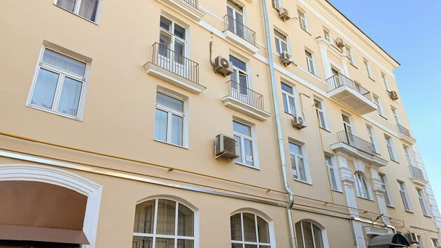 Еще один дом с сандриками отремонтировали в 2023 году – это здание на ул. Покровка (д. 15/16, стр. 1), построенное по индивидуальному проекту 120 лет назад. Оно возведено в неоклассическом стиле. Главный фасад угловой, скругленный, с четким ритмом, заданным полуколоннами и пилястрами во всю высоту дома. По периметру здания расположен венчающий карниз. В хоте ремонта привели в порядок фасад и кровельное покрытие. Специалисты очистили открытые плоскости, восстановили штукатурный слой и поврежденную кирпичную кладку, а также архитектурные элементы. Гранитный цоколь на лицевой части фасада промыли и отполировали. При окраске здания использовали колористическое решение тех лет – цвета «зеленая стена» и «зеленые стручки гороха». Кроме того, в доме заменили входные двери и водосточные трубы. На крыше усилили стропильную систему, заменили обрешетку, а деревянные элементы обработали огнебиозащитным составом. Утеплили чердаки и заменили кровельное покрытие.