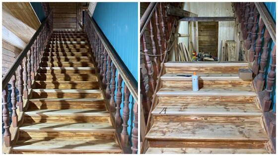 «Сначала мы зачищали ступени от старого покрытия и грязи. Затем те части ступеней лестницы, которые износились, срезали и на освободившееся место делали вставку из новой древесины. Далее будем покрывать лестницу краской и лаком. Балясины решили оставить в историческом цвете, предварительно их почистив», – рассказывают реставраторы.
