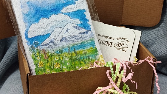 Я сотрудничаю с разными мастерами. Например, делала визитки и бирки из крафтовой бумаги для нашего местного мастера кожевника. Он часто ездит на выставки и говорит, что мои бирки продают его изделия. Все обращают внимание, из чего они сделаны.