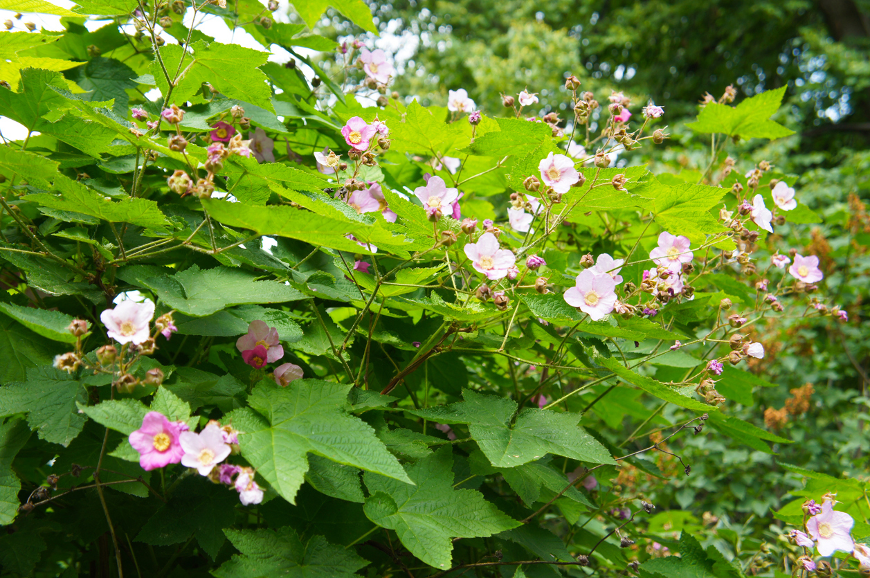 В последнее время в среде садоводов стали весьма популярны декоративные малины — полукустарники и кустарники с красивыми листьями и довольно крупными розовыми цветками. Особенно востребована малина душистая, которая высоко ценится за способность сохранять декоративность даже в полной тени.