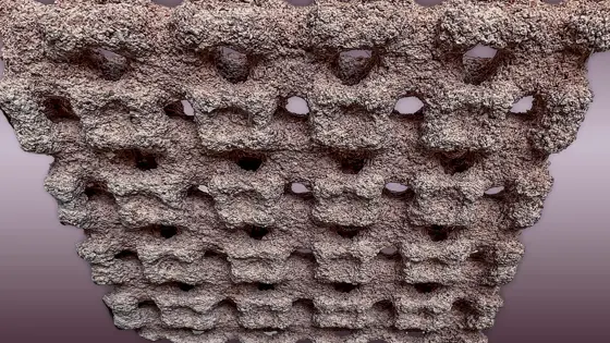 Изготовленный в основном из переработанного мраморного порошка, материал с помощью 3D-печати превращается в легкие пористые плитки, похожие на лотки для яиц. Испытания показали, что облицовка стен и потолка читального зала библиотеки этими плитками позволяет снизить дискомфорт от влажности в помещении на 85%.