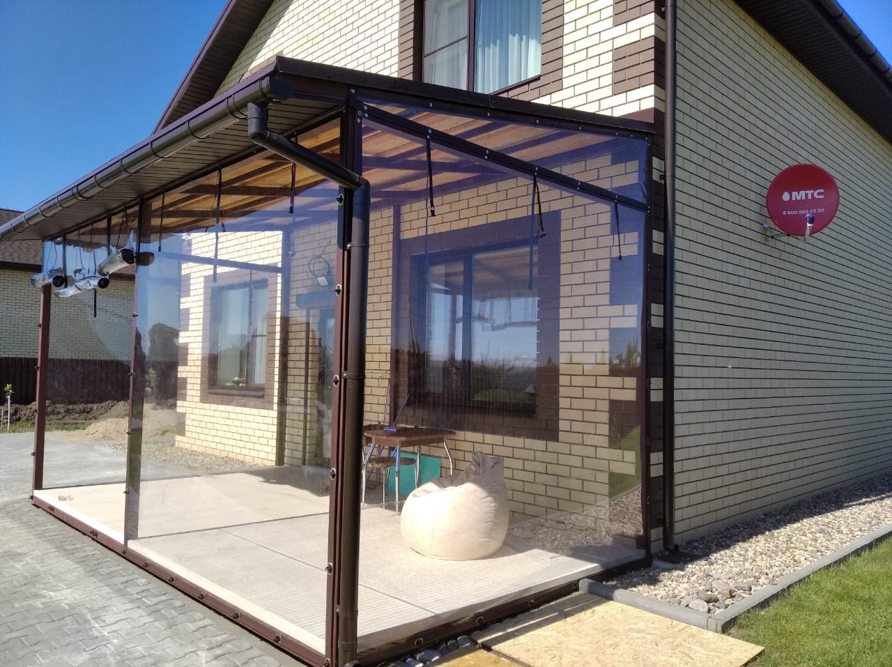 Чаще всего домовладельцы делают террасы открытыми — в виде настила с ограждением, с навесом или без него. Зимой и поздней осенью на такой площадке не посидишь — расположиться с комфортом с кружкой кофе, например, получится только в теплую погоду. Однако некоторые хозяева не желают мириться с дождями и морозами, загоняющими в дом, и делают террасы с панорамным остеклением или «мягкими» окнами, устанавливают в них обогреватели и теплые полы — и ничто не мешает им наслаждаться комфортом круглый год.