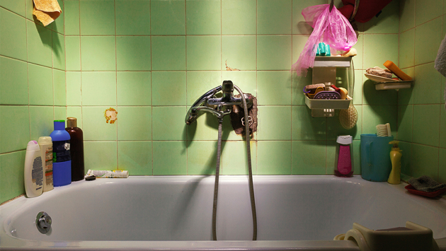 - Очистка. Тщательно вымойте плитку обезжиривающим средством, удалив остатки мыла, плесени и загрязнений.