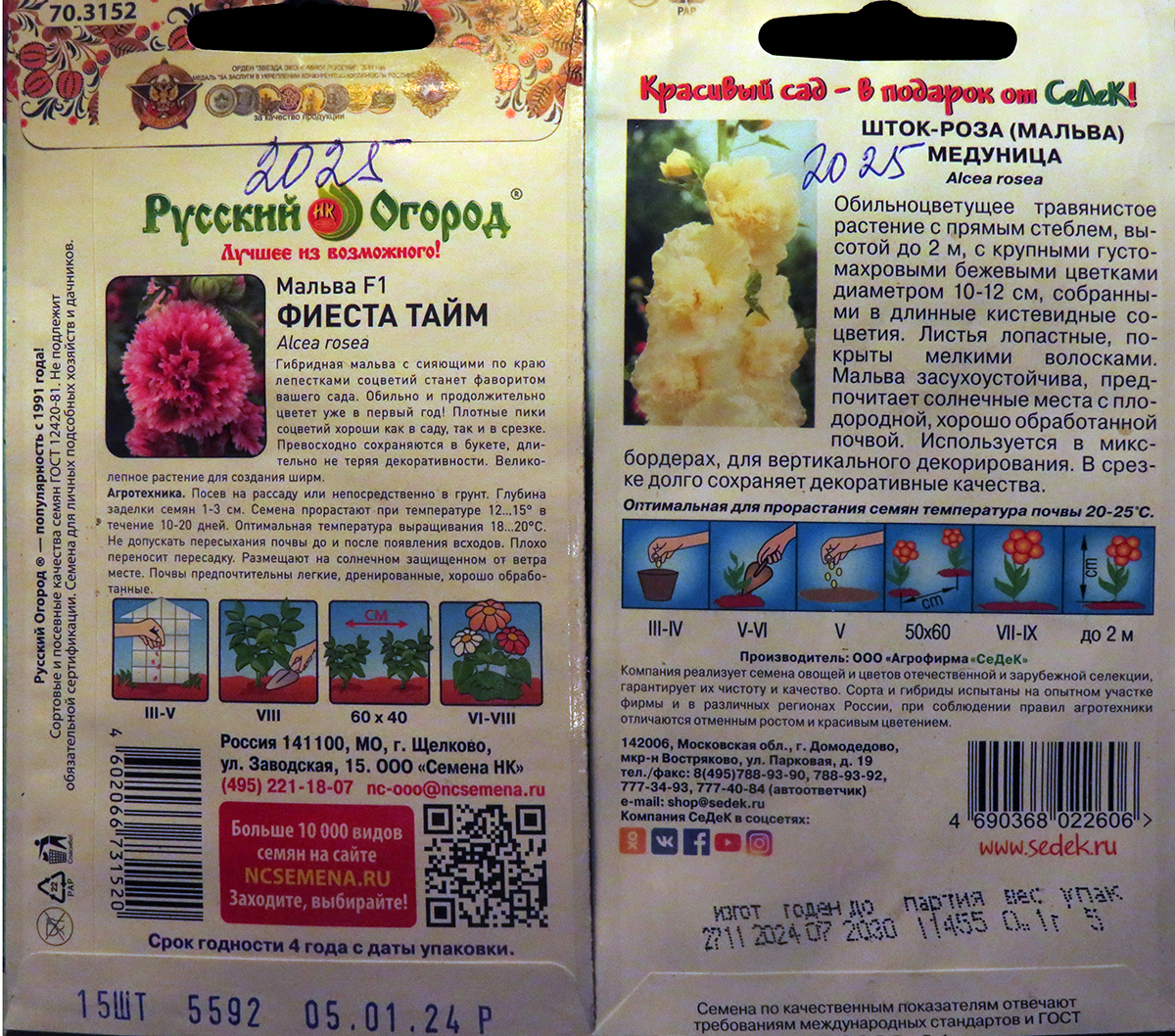 Бежевые, возможно совсем свежие, конец ноября 2024 года упаковка, розовые расфасованы в январе 2024, значит в лучшем случае 2023 год сбора семян. Посмотрим, но это — последняя попытка...