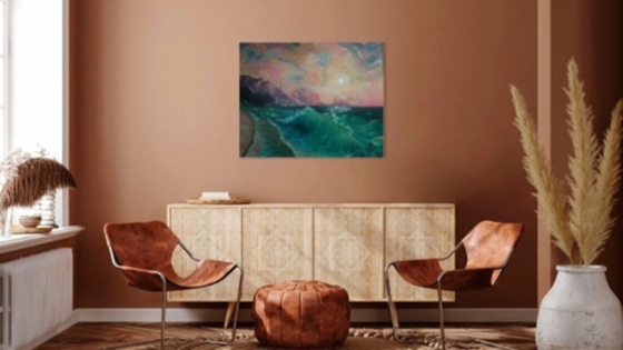 Еще один удачный тандем — терракотовый и пастельно-бирюзовый. Теплота терракотового компенсируется прохладой бирюзового, что делает интерьер одновременно уютным и легким. Такое сочетание хорошо работает в гостиных и кухнях, особенно в стиле бохо или средиземноморском.