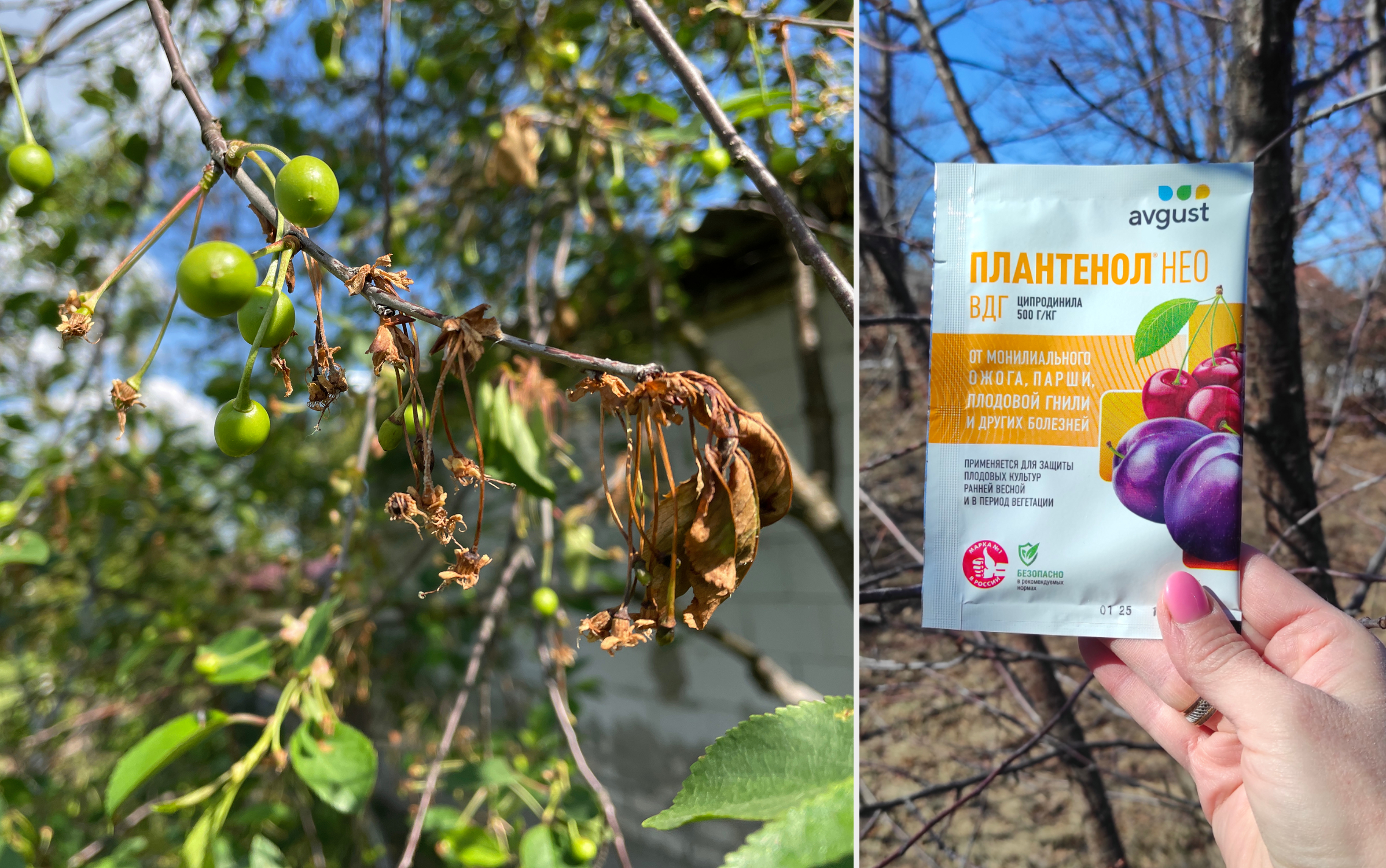 Всегда лучше действовать на опережение и не забывать о профилактических опрыскиваниях. Нужно постараться провести 2 обработки до цветения. «Плантенол® Нео» хорошо работает даже при низких температурах, что нечасто встречается среди органических препаратов. Губительно действует на возбудителей монилиоза, плодовых гнилей,