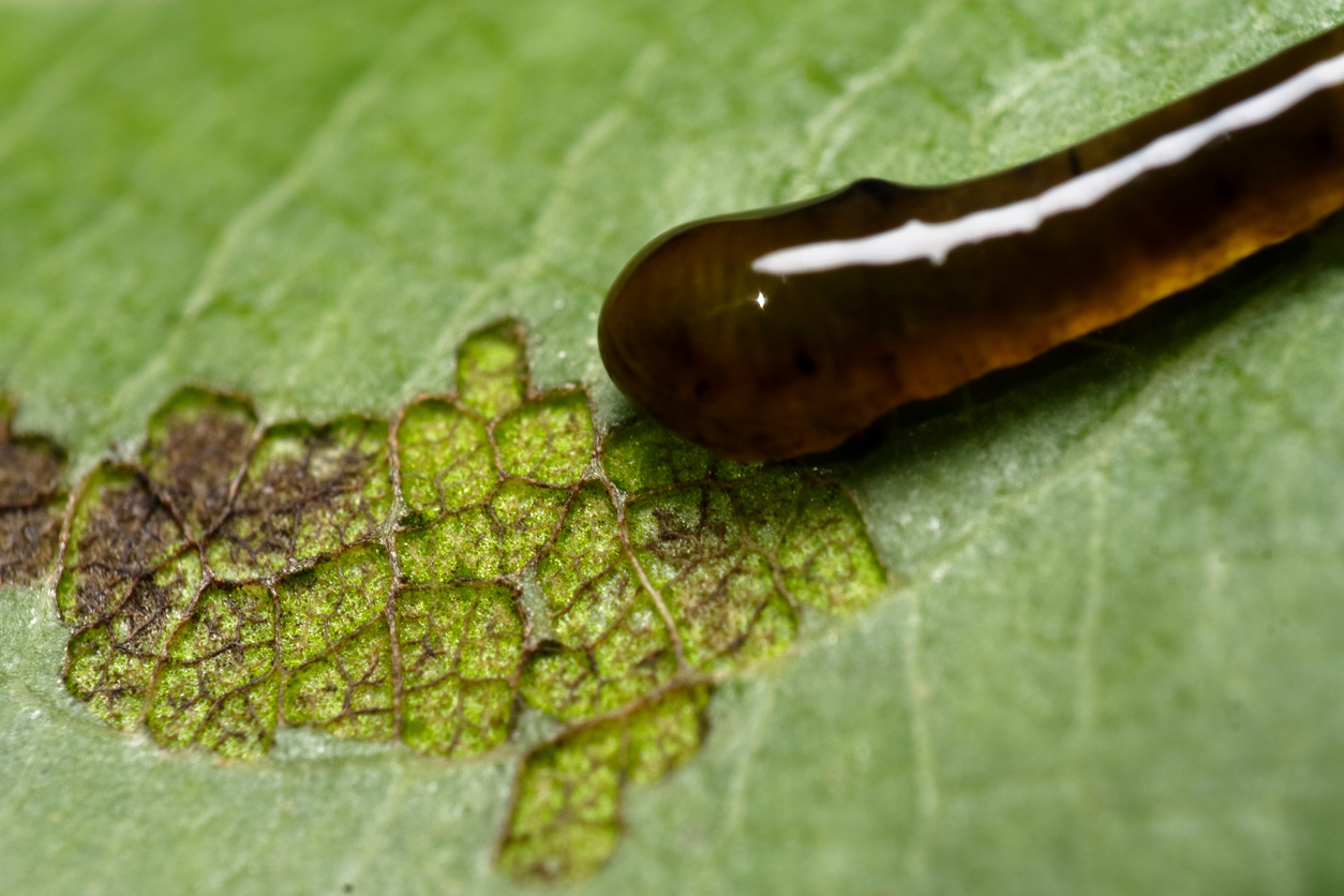 Однозначно это вредитель, а вот какой — зависит от узора и других симптомов. Так, вишневый слизистый пилильщик выгрызает только мякоть листа и верхнюю эпидерму. Это вредитель, которого трудно не заметить, после него остаются лишь полупрозрачные участки нижней покровной ткани листа.