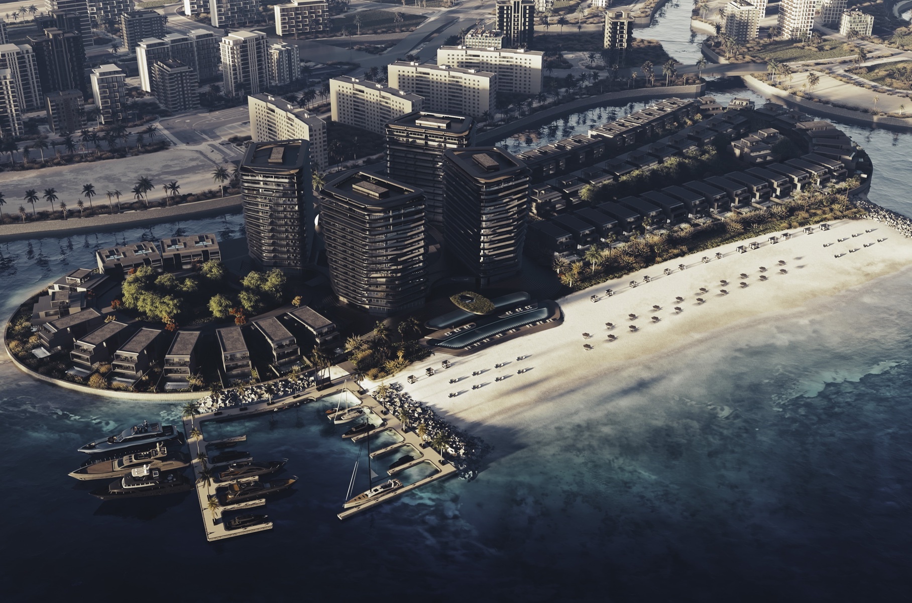 Это будет частный остров с дизайнерскими 13-этажными башнями, сотней вилл, закрытым пляжем, развитой инфраструктурой и причалом для катеров и яхт. Стоимость апартаментов в Brabus Island начинается от 700 тысяч евро, ну а пентхаусы и виллы оцениваются в несколько миллионов — по меркам ОАЭ, это немного.