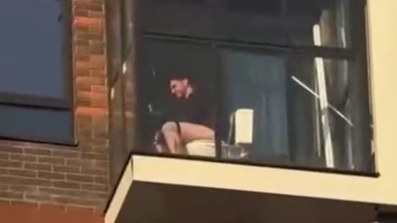 Сидящий на унитазе на балконе с панорамными окнами москвич попал на видео. Ролик опубликовал Telegram-канал «Первый Московский».