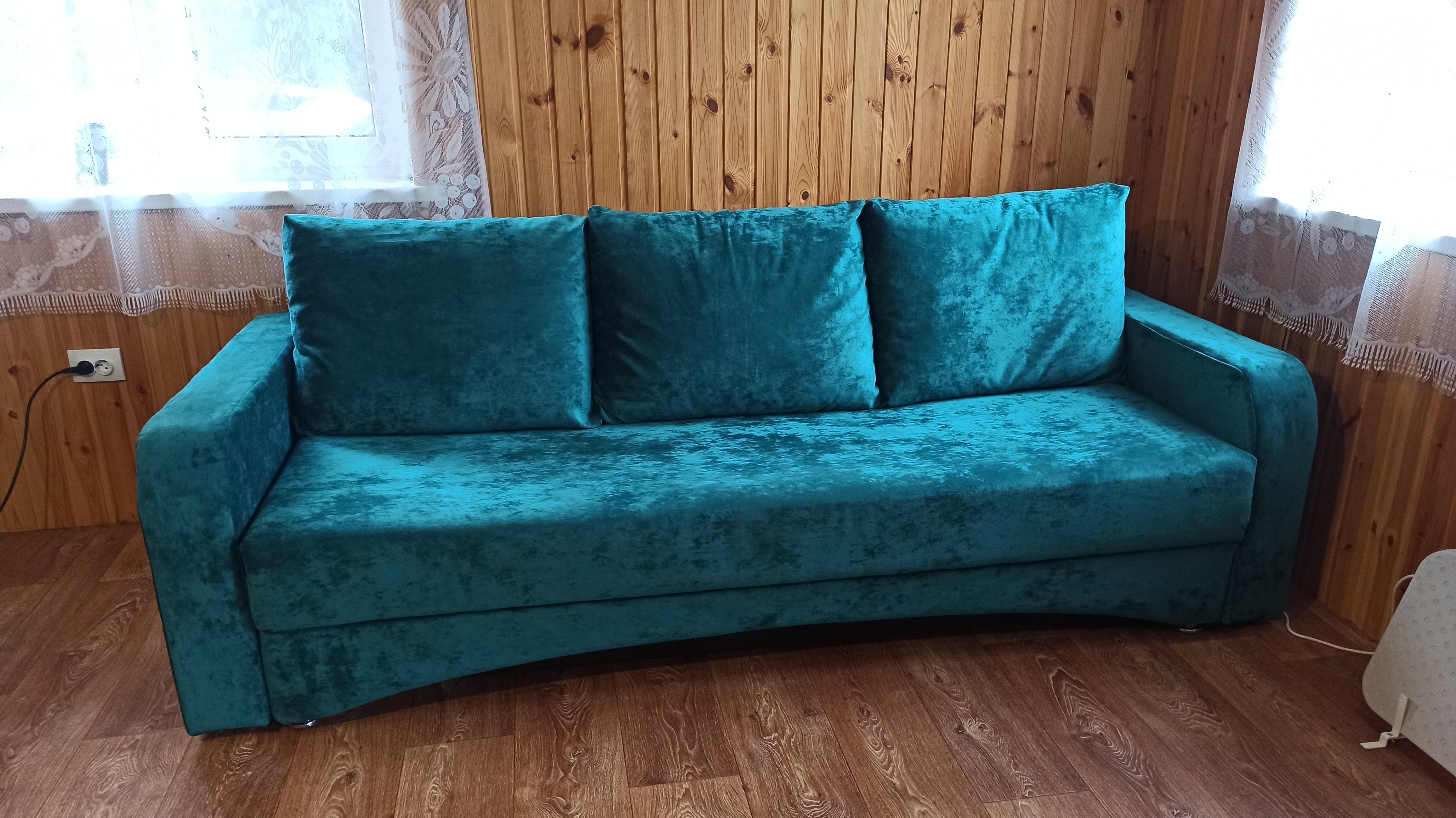 Как и у многих, у нас на дачу уехала мебель, пожившая в квартире, ставшая немодной, надоевшая или с дефектами. Особая моя головная боль — диваны. Поскольку один полностью из дермантина, второй — частично, со временем этот чудесный материал начал распадаться на куски. Причем не так уж много лет прошло. На даче диваны закрыли временно чехлами. Мы тогда редко оставались там ночевать, так что вариант с чехлами подходил.
