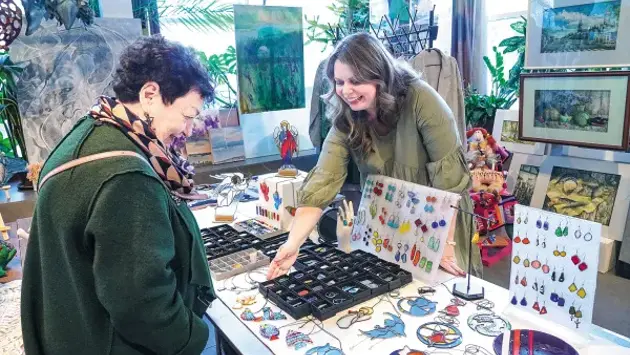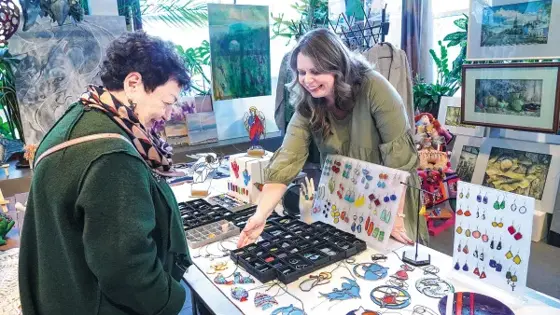 "Открытый воздух" объединил искусство и любовь к городской среде. С 1 по 5 октября пространство Дома архитектора было наполнено арт-объектами, украшениями ручной работы, картинами и дизайнерскими изделиями. Для гостей проводили мастер-классы, встречи с авторами, кинопросмотры и музыкальные вечера. На арт-маркете представили произведения, созданные во время пленэров и путешествий. Художники поделились впечатлениями от поездок на природу и посещения необычных мест в Самарской области. Например, участницы объединения "Палатка Group" вдохновлялись темой отшельничества. Они показали работы, на которых изображены широкий простор, бесконечные поля и зеленые леса. Также в экспозицию вошли картины, созданные в уединенных местах вдоль берега реки Самары. Другие авторы уделили внимание городской архитектуре - историческим зданиям, уютным дворикам, окнам с деревянной резьбой и пейзажам с окраины. Часть пространства занимали столы с продукцией мастерских. Анастасия Арестова и Ольга Астахова создают уже более 20 лет украшения из стекла и витражи. Они используют две техники: соединение фрагментов стекла с помощью медной ленты или пайки (техника Тиффани) и спекание отдельных элементов на единой основе при высоких температурах. - Мы создаем большие витражи для интерьеров, а также мелкую пластику: ювелирные украшения, бижутерию, подсвечники, - рассказывает Арестова. - Если в советское время витражей было много в общественных учреждениях и они носили пропагандистский характер, то сейчас их заказывают в качестве украшений в загородные дома. Доступна разнообразная гамма, которая позволяет делать растяжку цвета и мелкие детали. Из стекла можно создать самые разные изделия. Дизайнер Ирина Абросова представила головные уборы - повязки-трансформеры, которые в народе называют солохами. В них встроен специальный проволочный каркас, который позволяет изменять форму, например, превращать повязку в чалму, ободок или платок. Увлекаться дизайном Абросова начала с пошива одежды для себя. Научилась изготавливать верхнюю одежду, брюки, юбки и рубашки. Последние три года сместила акцент на головные уборы, чтобы женщины и девушки могли разнообразить свой гардероб. - Мы с коллегами посмотрели, как организует мероприятия самарский Союз художников, и решили сделать что-то свое, - говорит один из организаторов выставки, архитектор Татьяна Рычкова. - Это уже третья ярмарка в Доме архитектора. Сначала пригласили художников. Потом поняли, что наши архитекторы тоже создают интересные произведения. Одну из стен на выставке занимали мэтры. Там можно было увидеть работы знаковых самарских архитекторов Алексея Герасимова и Алексея Моргуна, которые еще известны как великолепные акварелисты. Также подобрали семь фильмов для тех, кто интересуется темой урбанистики и культурного наследия. Ближе к Новому году планируем провести еще одну большую арт-ярмарку.