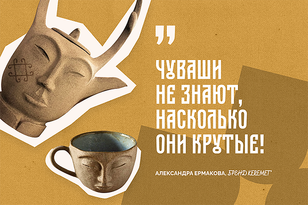 Что касается керамики Keremet', то Александра Ермакова рассказывает, что образ шамана был навеян каменными изваяниями, встречающимися в степях Алтая и Тувы, откуда вышли предки чувашей. Сейчас дизайнер работает над коллекцией «Род»: «Эта серия посвящена моей бабушке, которая была главой семьи. Бабушка вырастила четверых детей, ее все любили и уважали». В линейке есть стаканы в виде замужней женщины в платке — красивой и гордой чувашки — и двух детей, мальчика и девочки. Саша хочет добавить в коллекцию еще и мужчину, чтобы «семья» была полной и дружной.