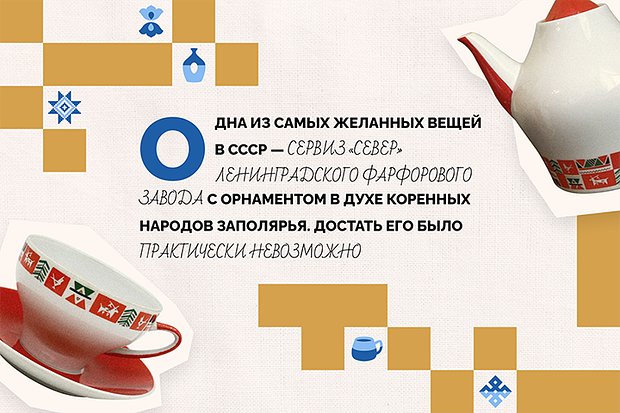 Второй всплеск увлечения национальным искусством случился после Октябрьской революции. В 1920-1930-е годы в СССР стали поддерживать промыслы и художественные ремесла, внедряя их в массовое производство. В обиходе советских граждан появились лаковые палехские шкатулки с красноармейцами и пионерами, фарфоровые фигурки пляшущих крестьянок, а также столовая посуда, на которой рисунок серпа и молота соседствовал с привычными «мальвами» и «розами».