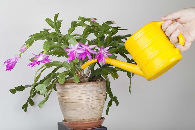 Как и все суккуленты, шлюмбергера не нуждается в частом поливе. Поливать декабрист весной и летом надо один-два раза в неделю. Осенью и зимой — один-два раза в месяц.